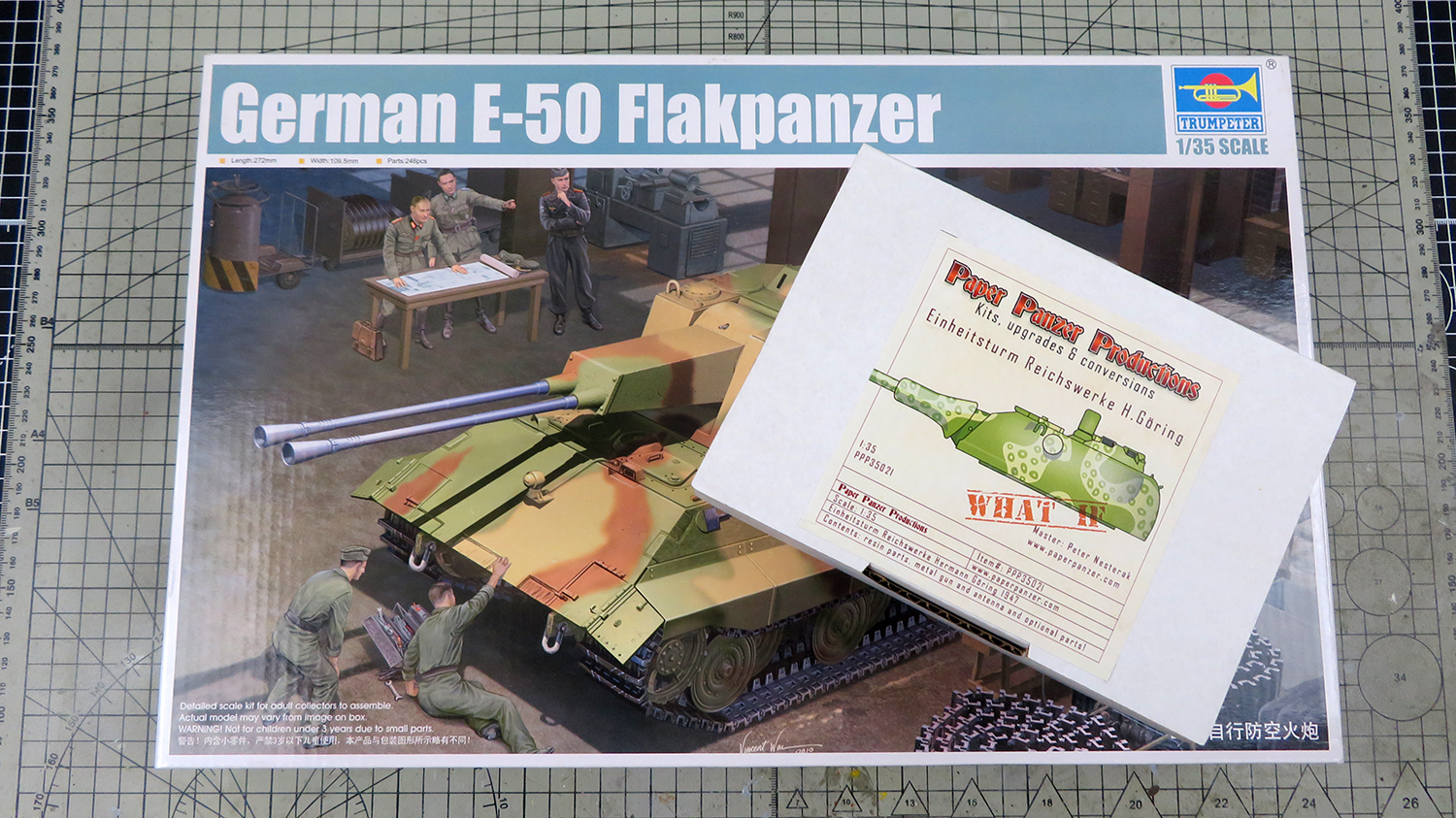 Last year in the kitbash GB I took the turret from a Flakpanzer E-50 kit and put it onto a Panther tank (still need to finish weathering that build!). Now I'm going to use up the hull of the Flakpanzer along with some resin parts from Paper Panzer Productions (RIP)