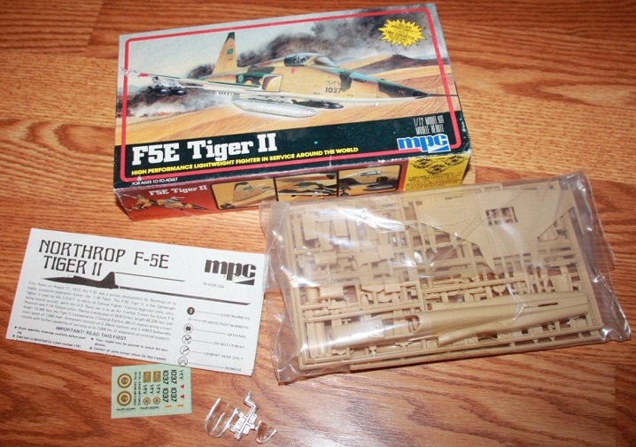 This all started a long, long time ago in a galaxy far, far away when I picked up a real classic, the 1/72 MPC/Airfix Northrop F-5E Tiger II. This one has been in the pile for at least a decade and I can't remember if it was an evil-bay find or something I picked up at a swap meet. Isn't that box art great? They sure don't make 'em like this anymore.