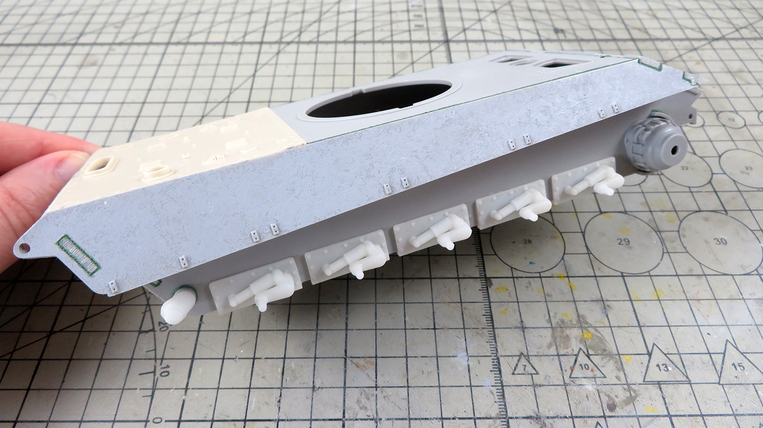 This can be quite a laborious step in the build process but I love how the added texture can make smooth plastic look like chonky armour. Now that prep work on both the hull and turret is complete I can start adding parts to them.