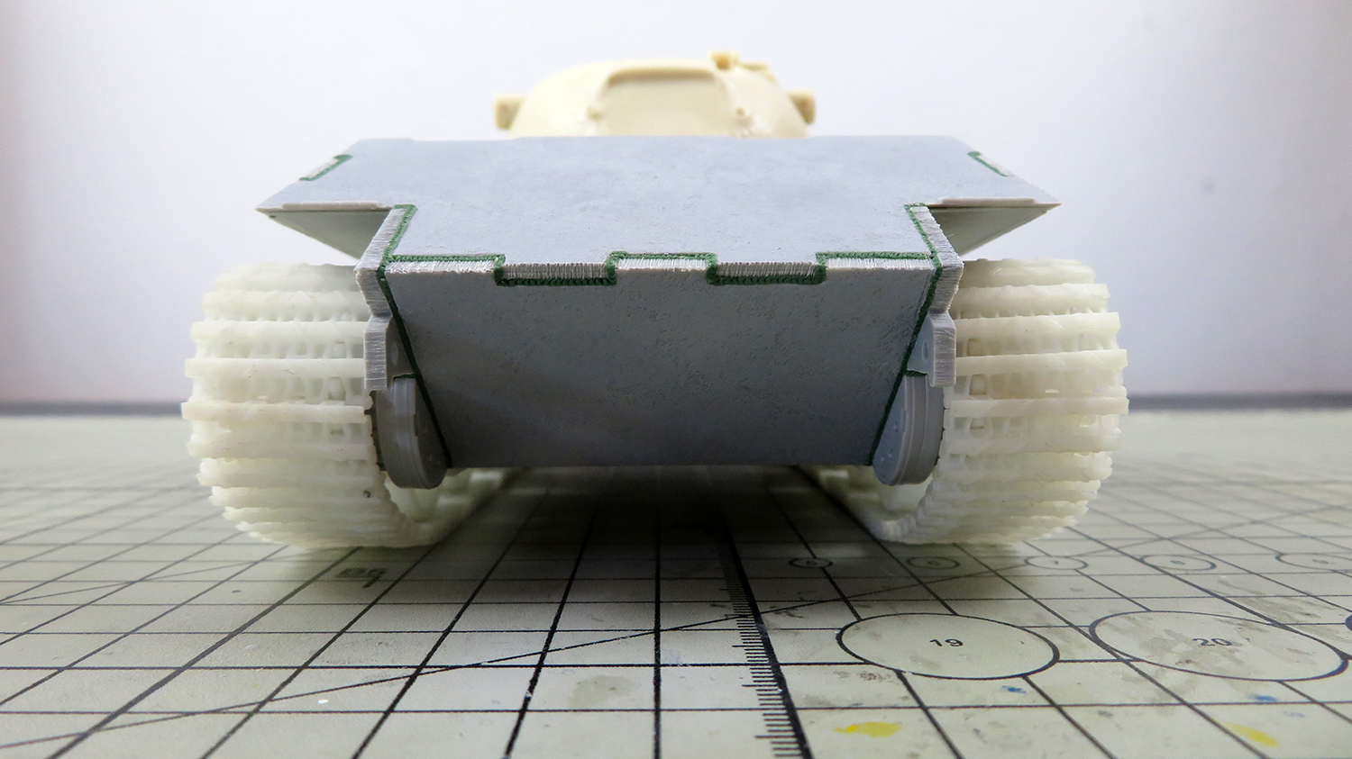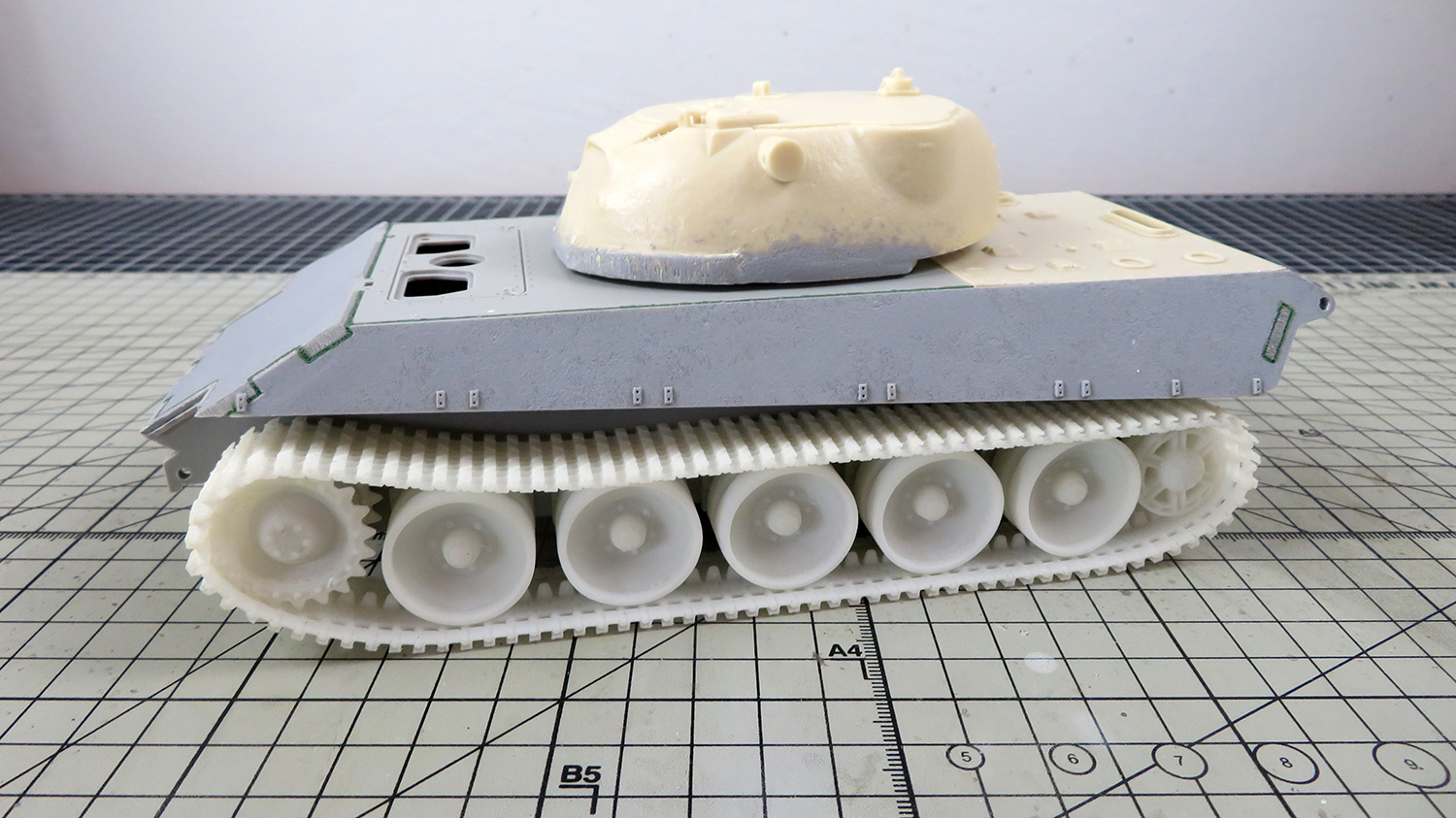 After working on the turret my attention returned to the hull and one of my favorite steps in the building process, adding texture.