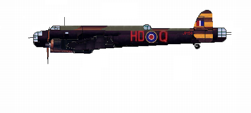 The aircraft is shown in the colours of Q-Queenie of No. 446 Squadron, RAAF, with Bomber Command's No. 4 Group at Driffield in 1944-5, based on the profile here, and is based on the HP.55 illustration in BSP:3.