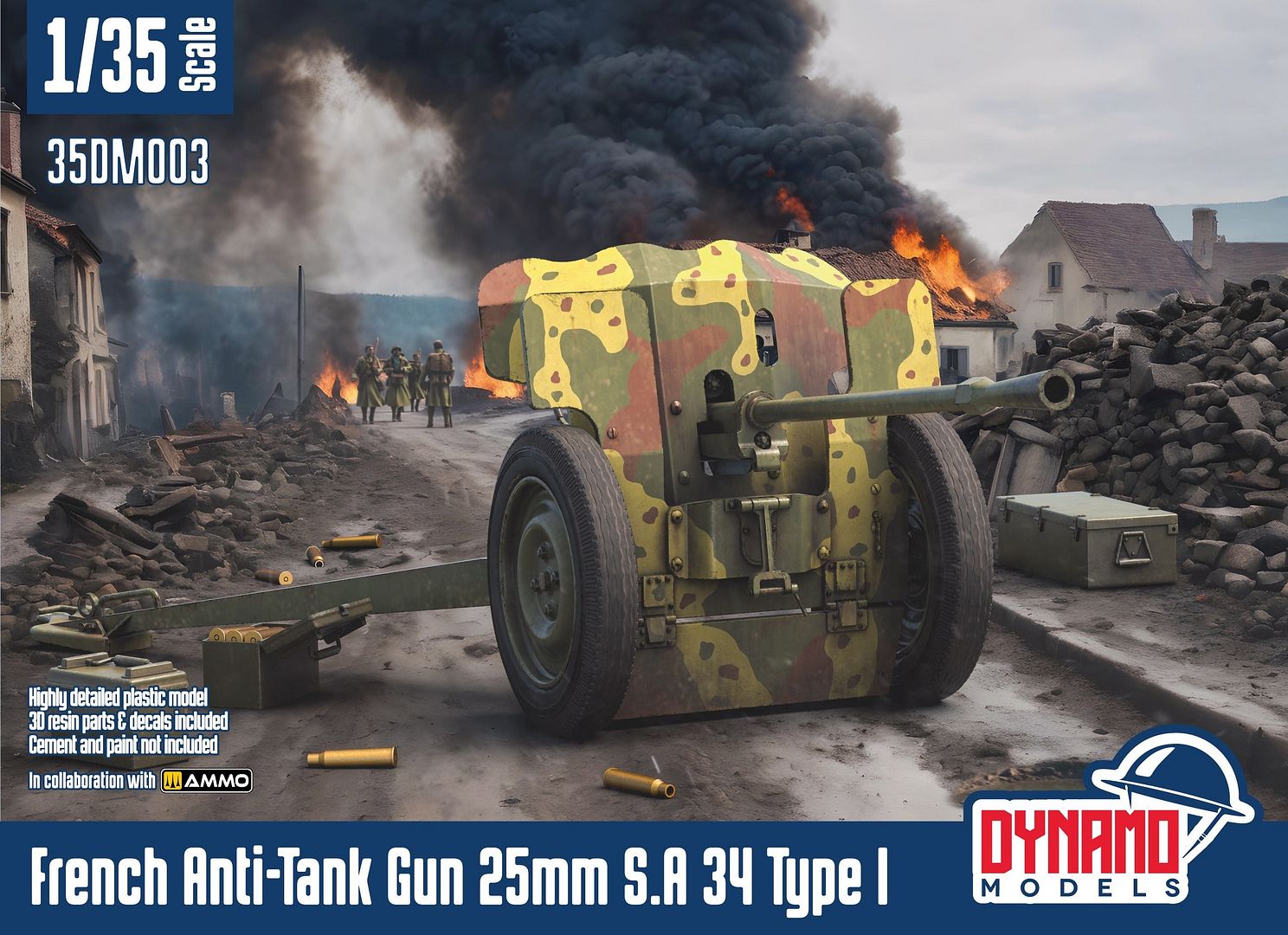 According to various sources covering the Dynamo Models S.A 34 25mm AT Gun kit it will be available in three versions with prices differing on what comes in the box.  The cheapest version will be just the basic kit, the next up will have 3D printed ammunition boxes and turned metal barrel with flash reducer.  The premium kit will include a 3D printed gun crew along with the 3D printed ammunition boxes and the turned metal barrel and flash reducer.