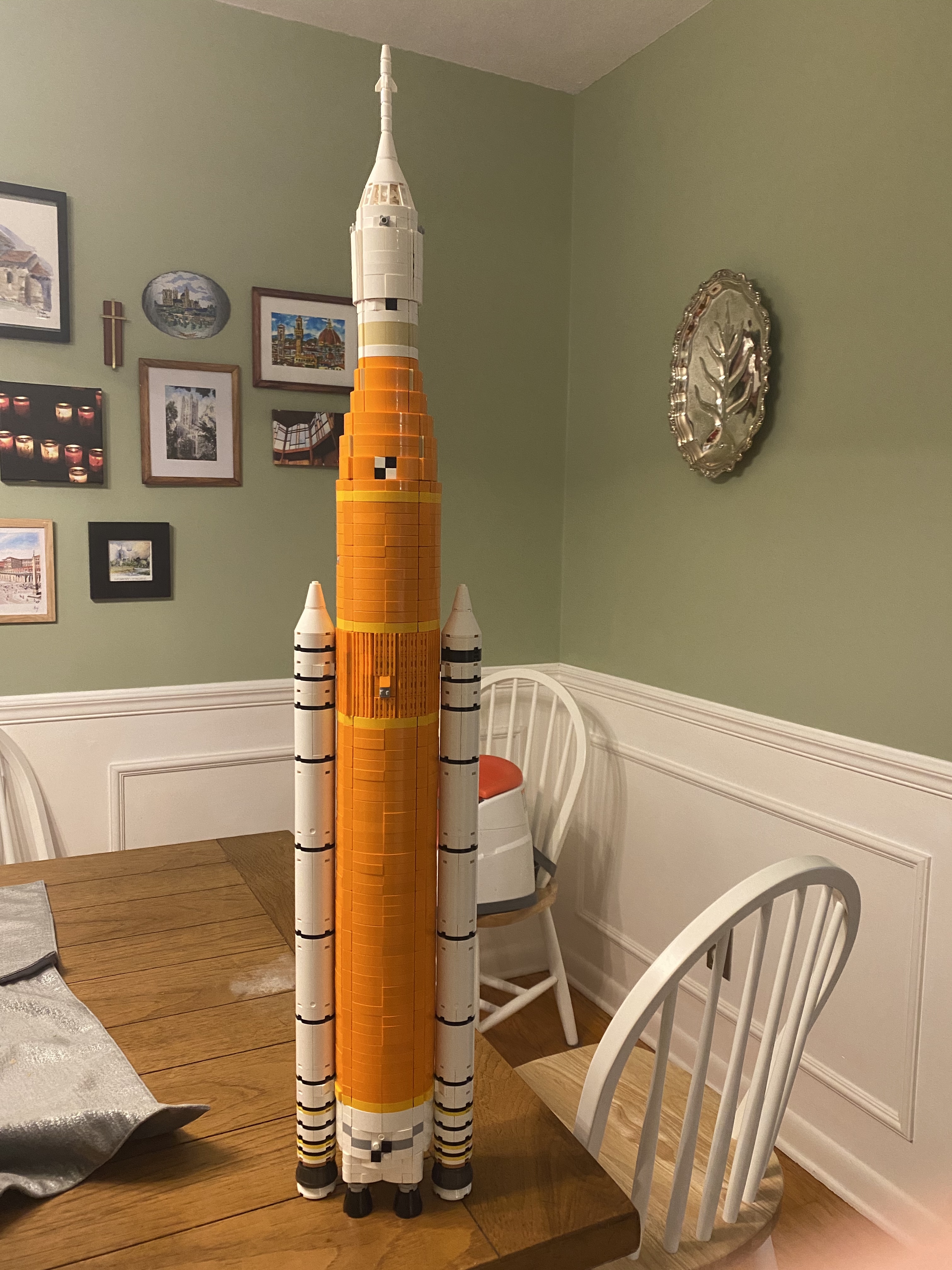 My son bought and built the new Lego Saturn V model. It's 39" long (approx' 1 metre).