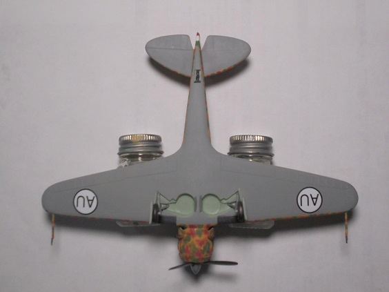 - > All BroPlan MS-88 AUT.18 post-modification build undersides masked-off, landing gear well cover part outsides, spray painted Humbrol 140 Matt Gull Grey + 36% Testors Flat White shading enamels replicating Gigorio Mimetico, good results.
