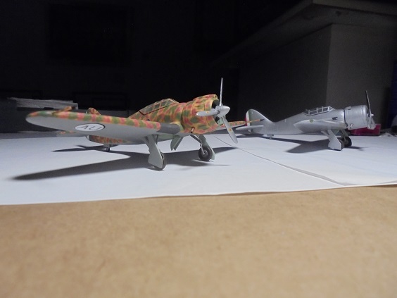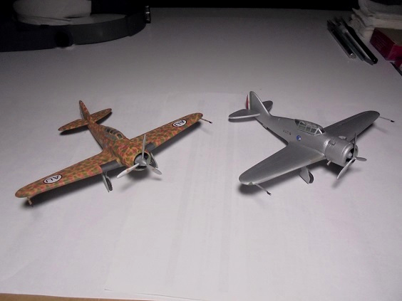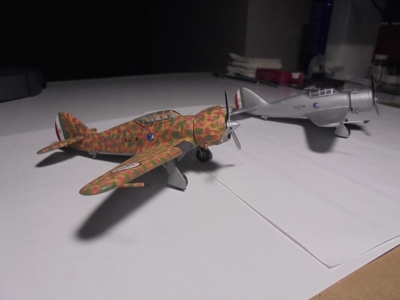 ...But that's all, former designed in 1934 but not built for quite sometime first flying on August 22, 1939, latter designed & constructed in 1934, first flying on May 6, 1935, former outclassed & obsolete by time of its first flight, lstter approaching obsolence by time of AUT.18's first flight but nevertheless an effective fighting machine flown by several national air forces, 7 of 11 early WWII French aces flying H.75s, Lieutenant Edmond Marin la Meslée singularly garnering 15 confirmed & five probable victories in the type. Had Curtis Model 75 Hawks been designed to accommodate 1,000hp-plus radials no doubt despite being larger & heavier they'd been formidble against all the Messerschmitt Bf109E fighter variants during the Battle of France, Italian Macchi C.200 & Reggiane Re.2000 fighters then barely able to compete with French Hawks never mind German Emils in 1940.