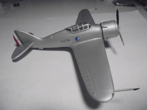 - > AUT.18 pre & post-modification period photos strongly suggest propeller blades were "natural metal", post-modification propeller spinner possibly as well, lacking definative information to the contrary sprayed painted it Testors Flat Aluminum enamel, glued it on cut styrene plastic spacer stake over propeller hub, LF/KORA 72-202 FIAT decal logos affixed on blades per period photos, OK results.