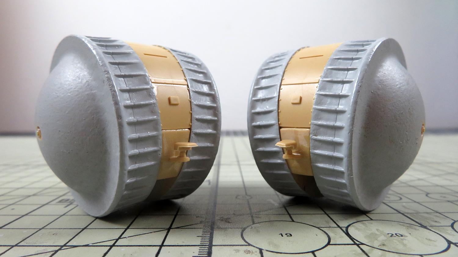 I applied some Mr. Surfacer to the wheels to add some texture to the smooth plastic and to also try and fill a large seam running down the middle of the wheels.