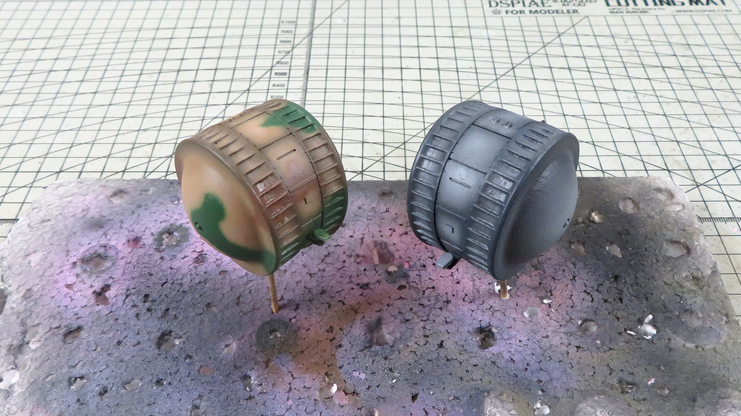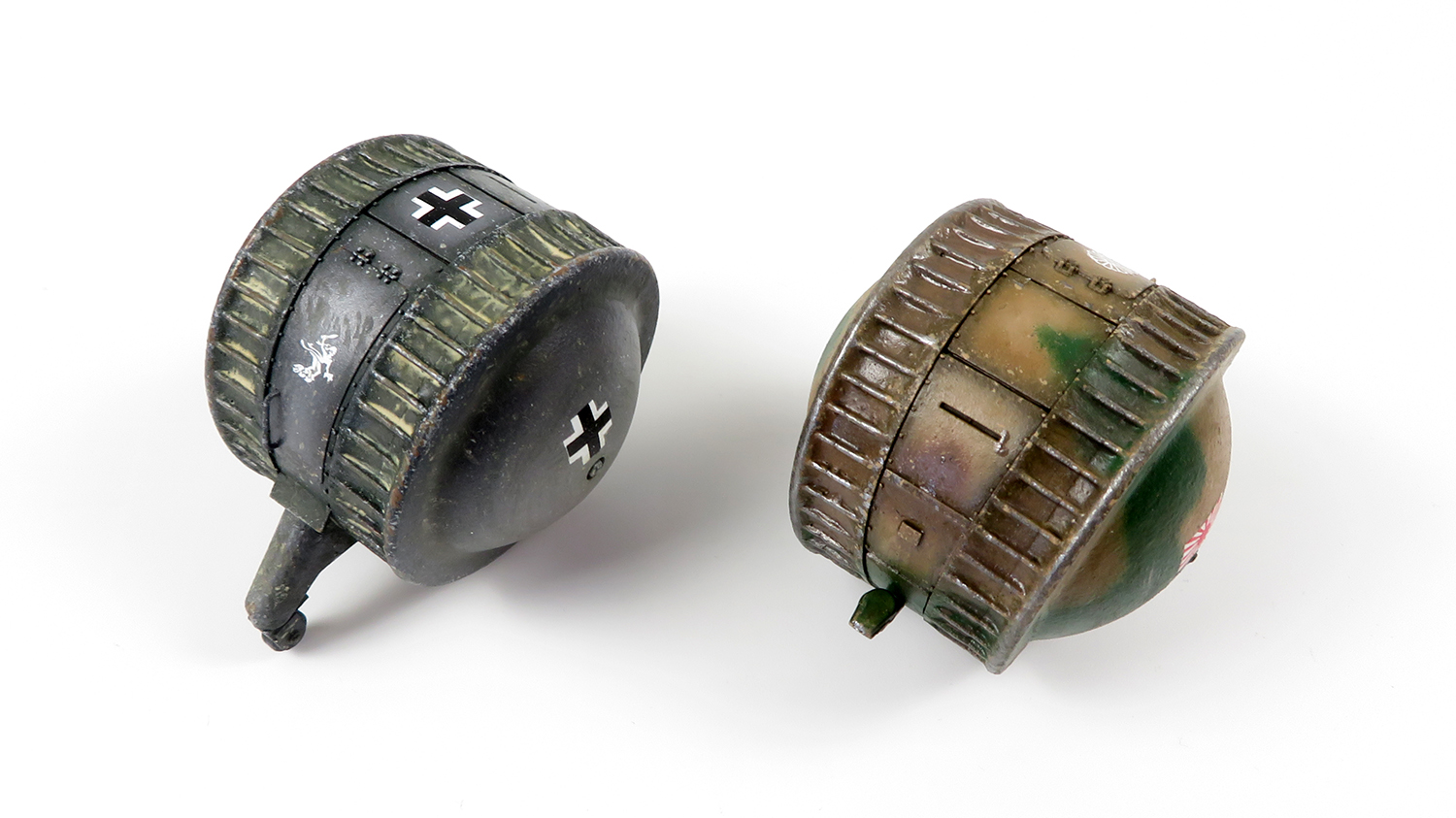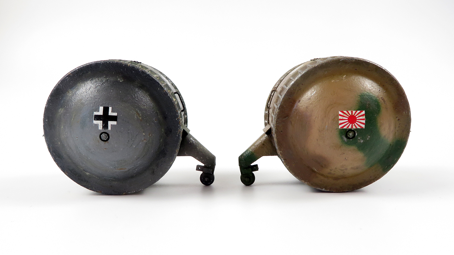I added chips and scratches to the paint with a sponge and then highlighted the larger chips on the German grey with a rusty brown. The Japanese tank is painted brown already tho so rusty paint chips obviously wont work, so I used dark metallic paint over the chips instead.
