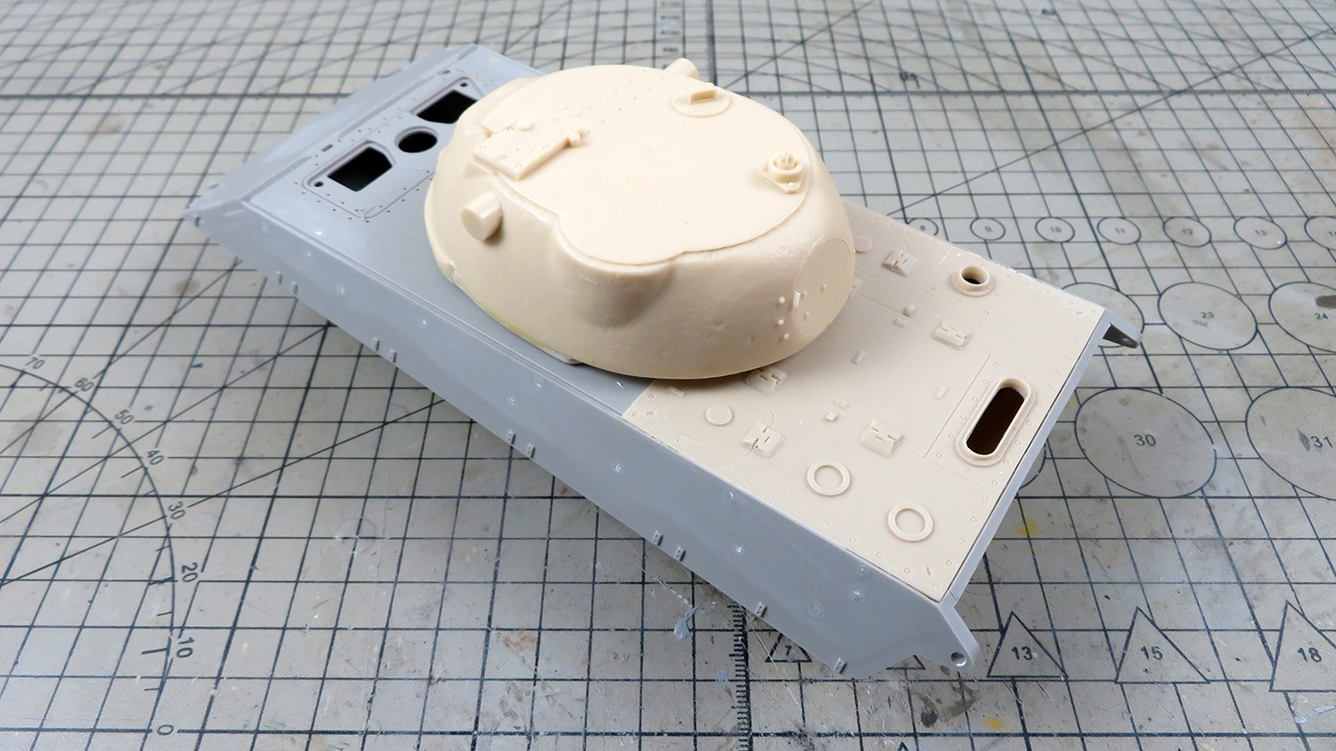 I made start on my build, I glued the upper and lower hull together along with a new resin rear plate. I had a bit of trouble fitting the hull together, I'd presumed the issue was the resin part but on closer inspection I found that the plastic hull was warped and the resin was perfectly straight ;D After some sanding and clamps I managed to fit it together tho.