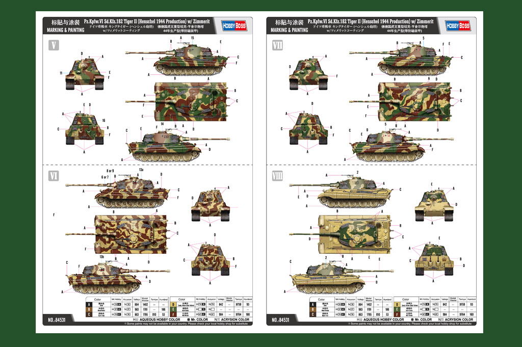Pz.Kpfw.VI Sd.Kfz.182 Tiger II (Henschel 1944 Production) w/ Zimmerit Model:# 84531 1/35th scale