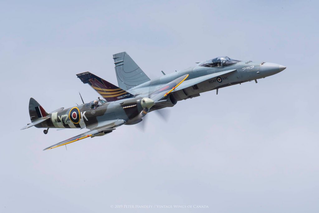 2 magnificent planes to fly! That’s me in the Spitfire yesterday, leading the Hornet @aerogatineau Airshow all weekend!