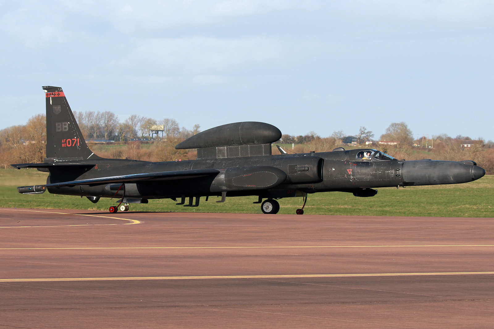 CRICK01 80-1071 U-2S from the @9thRW based at Beale Air Force Base is seen here taxing back in at RAF Fairford after an 8 hour mission. Seen here in Senior Ruby configuration: Senior Span Dorsal, Ruby Super Pods, DDL2+ and ASARS nose