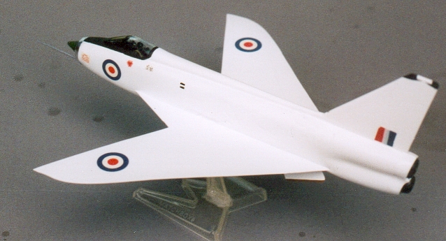 Forward swept wings laminated from plasticard, and white scheme reminiscent of the TSR-2 prototype.