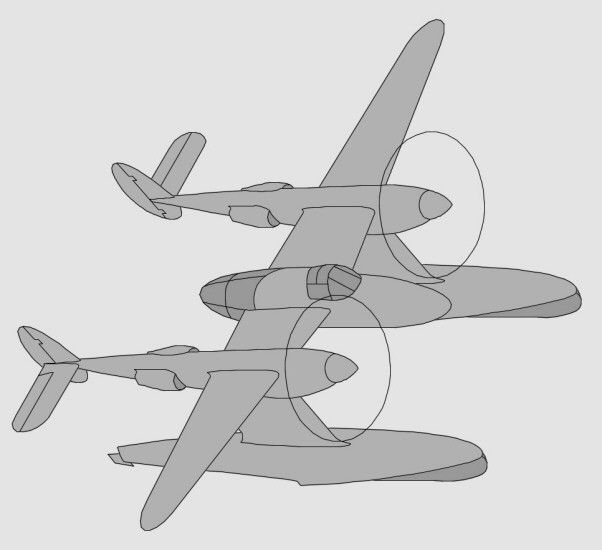 From a genius idea of ysi_maniac (see http://beyondthesprues.com/Forum/index.php?topic=4057.15 ), here are caterpillar Lightning flying boats, to invade beaches: in 1943 1,999 single-wing PLD-38A have been ordered by the US Marines for Normandy, and 999 tandem-wing PLD-38B have been ordered for Leyte: