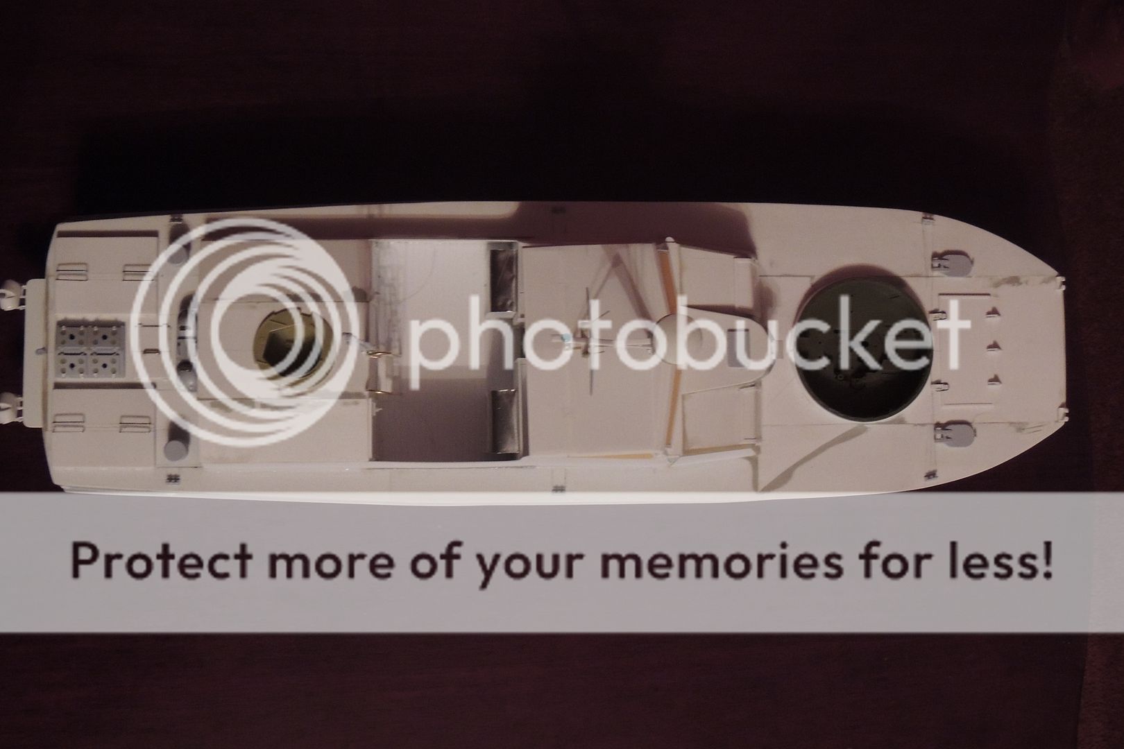 The water-jets, canopy, ladder, pilot's seat & wheel are all loose-fitted for the photo's & will be painted & detailed seperately.