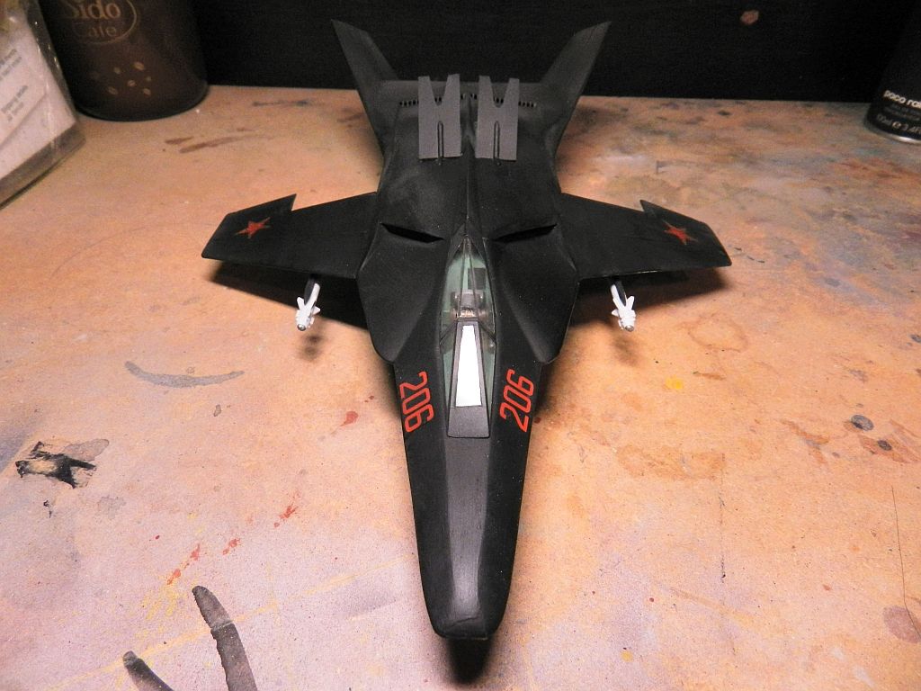 Status - lost plate between verticals and both airbrake plates (along with actuators, removed both plates near exhausts, cut-off flaps, sharpened radome, removed sensors, rear bomb bay closed forever, additional two missile pylons under wings