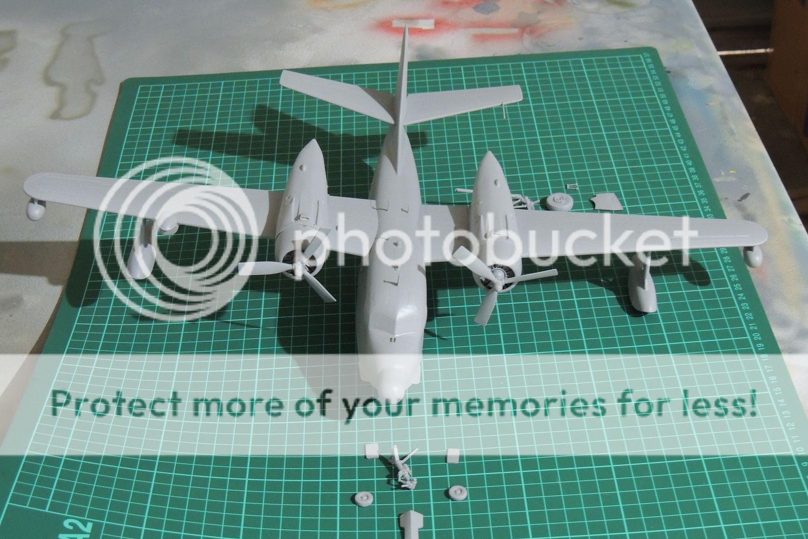 The nacelles have been flipped & fitted to the opposite wings, I've also cut off the front of the nacelles & re-attached them right-side up, & I've fitted the rear section of the nacelle (a separate unit) up the right way ... hence the big V-shaped gap at the rear.
