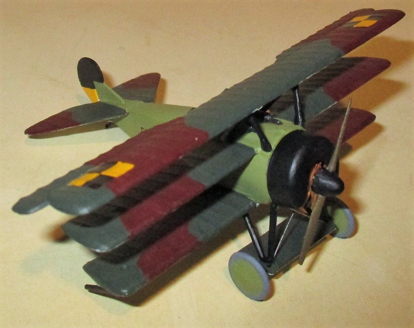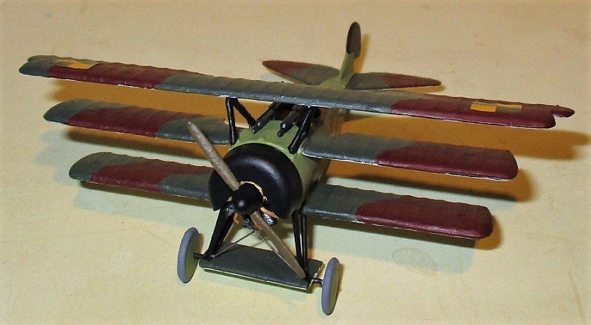 I left off the interplane struts as a nod to the original Fokker Triplane prototype. I like the idea that they were only added to mollify pilots who didn't understand that they weren't needed due to cantilever construction but found their omission frightening.