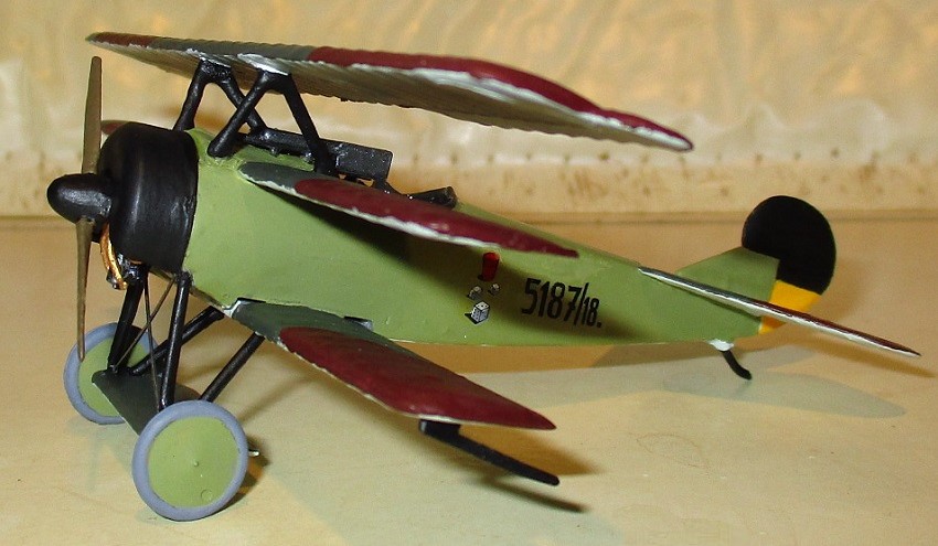 The terrible two-in-one Airfix engine & cowling were replaced with better parts from an Eduard Nieuport. The prop was swiped from a DH Chipmunk.