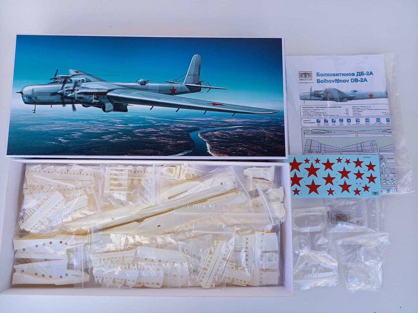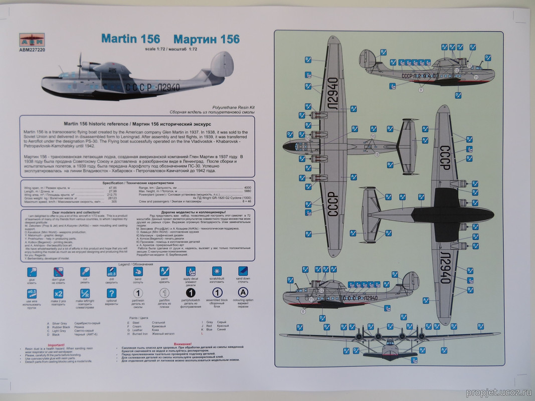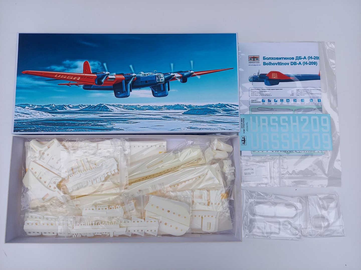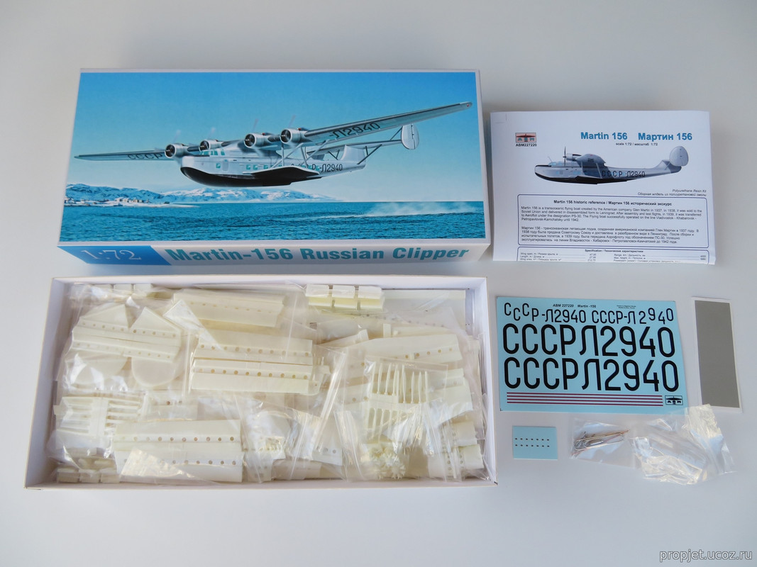 The set includes 70 names of parts from polyurethane resin, vacuform canopies, stand, decal "Begemot" , instruction - two A-3 sheets and the rest.
