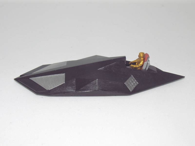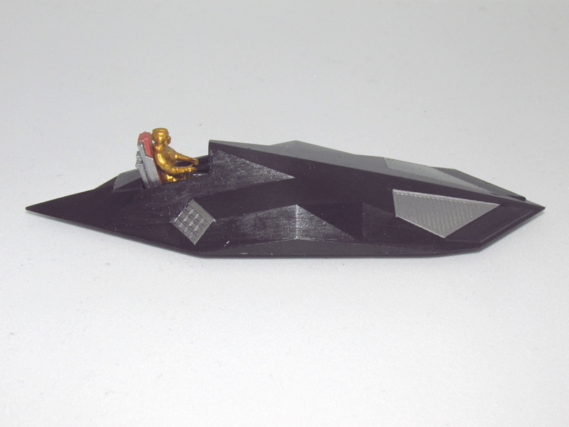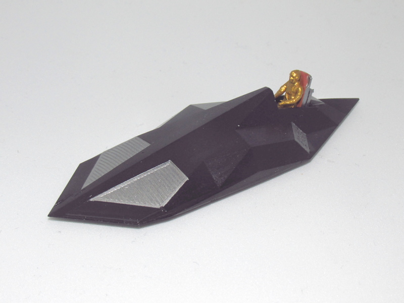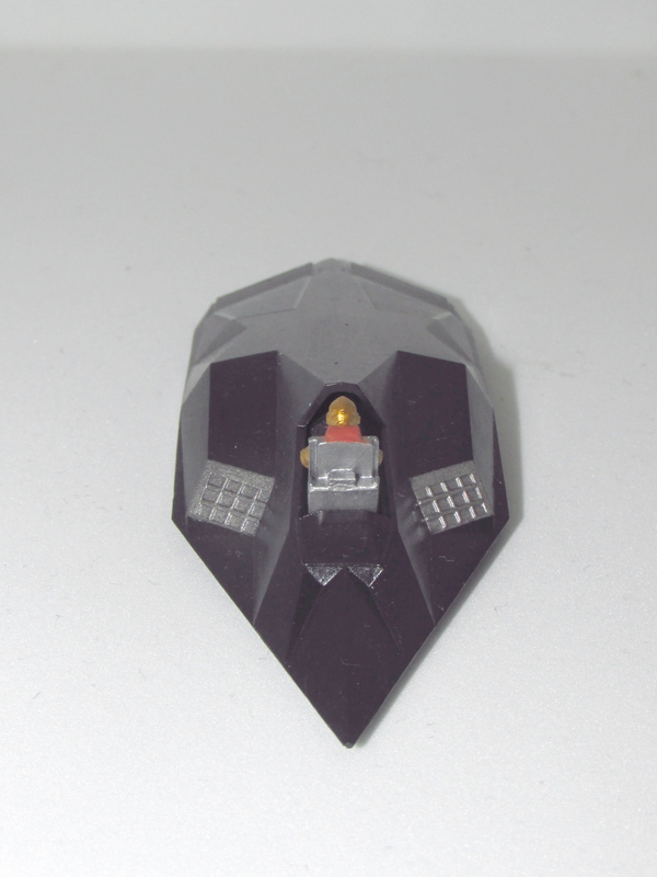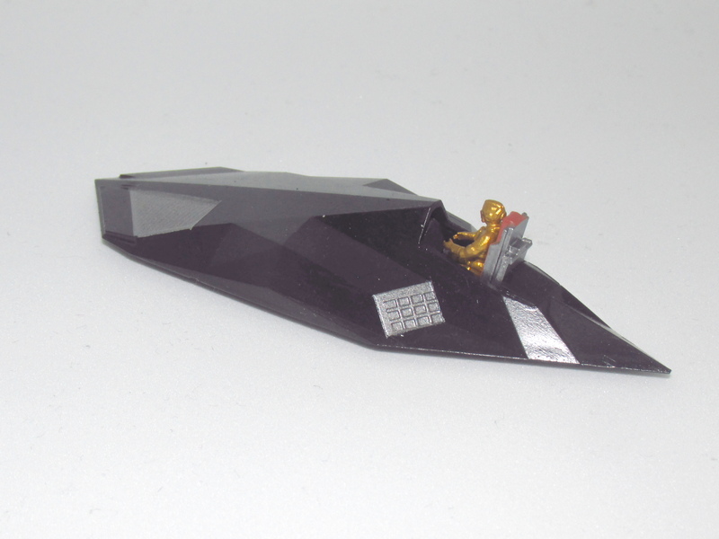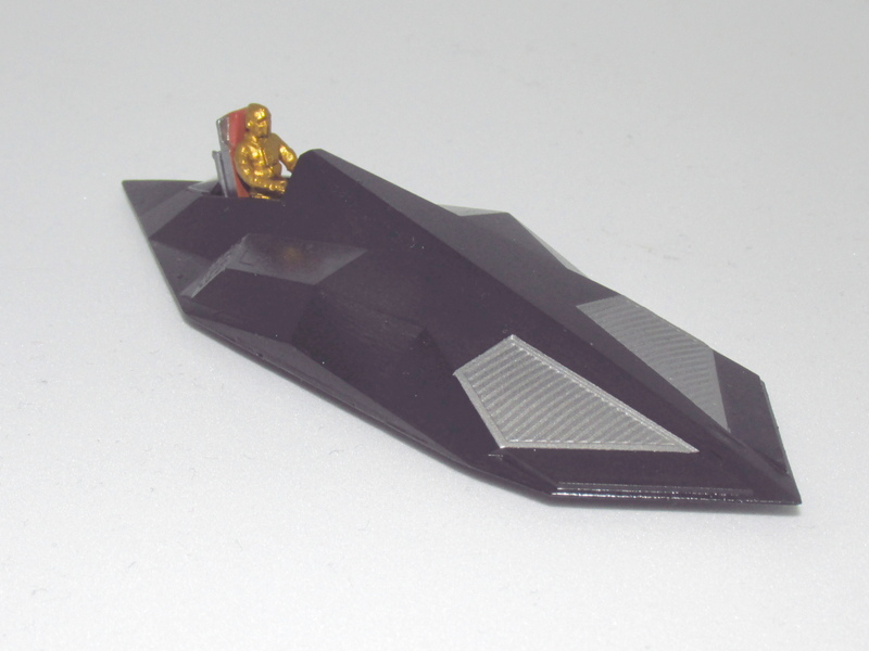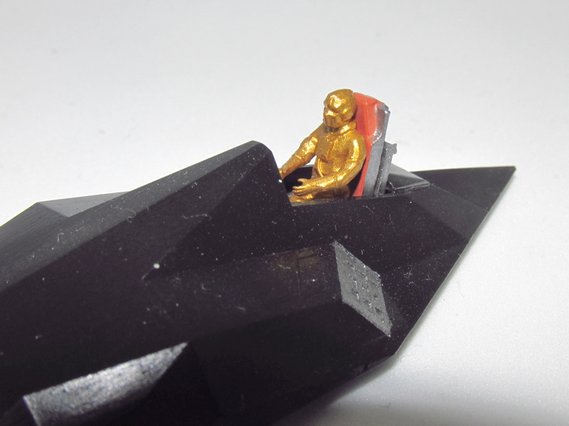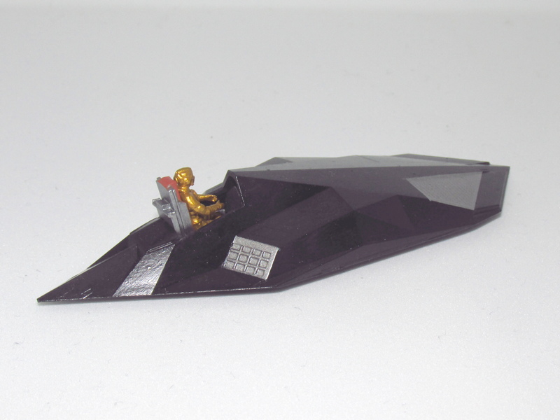 Revell F-117 'Shadowhawk' kit, with a 1/72 seat, from an Airfix F-5 I think, and a 3D printed 'Tognath Warrior' figure from somewhere online, that I painted gold to look like a droid . . .