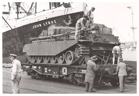 Some interesting shots showing the Australian Centurion Tanks first arriving: