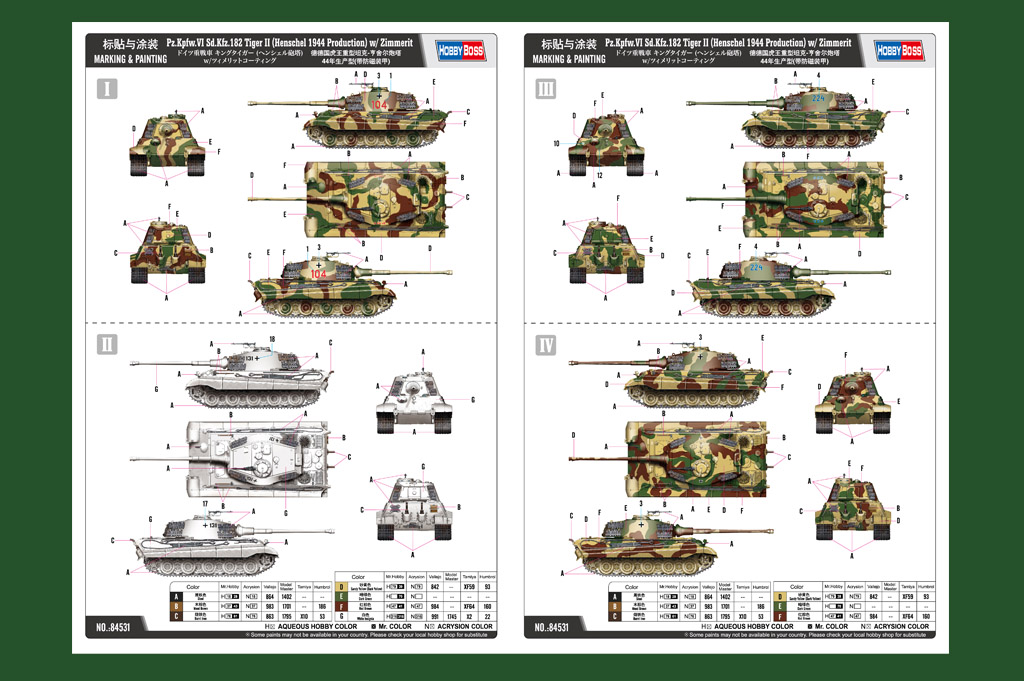 Pz.Kpfw.VI Sd.Kfz.182 Tiger II (Henschel 1944 Production) w/ Zimmerit Model:# 84531 1/35th scale