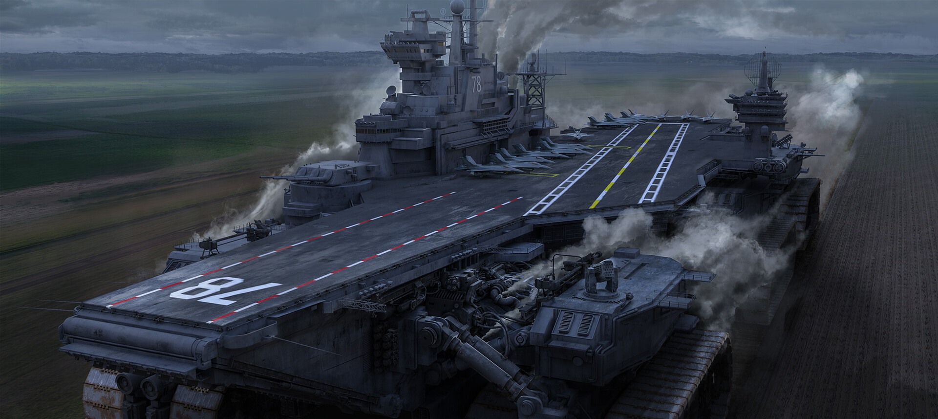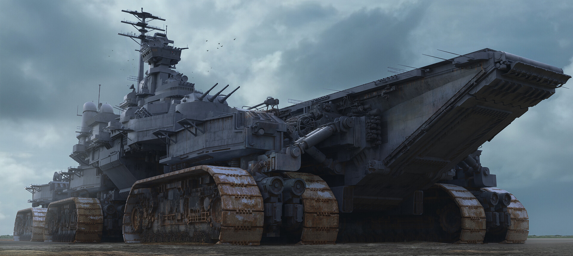 The mythical land carrier! Complete with battleship turrets and WWII-era bridge controls!