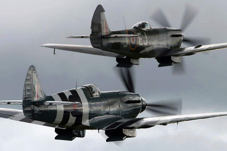 Frank Parker in formation last week flying the Curtiss P-40E Kittyhawk restored by Pioneer Aero at Ardmore.