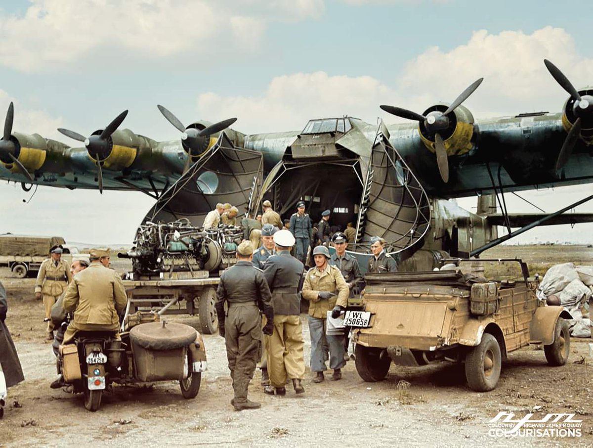 Wow, modern 'colourisation' (by maestro RJM) can really bring WW2 to life, a Luftwaffe Me 232 transport in North Africa.