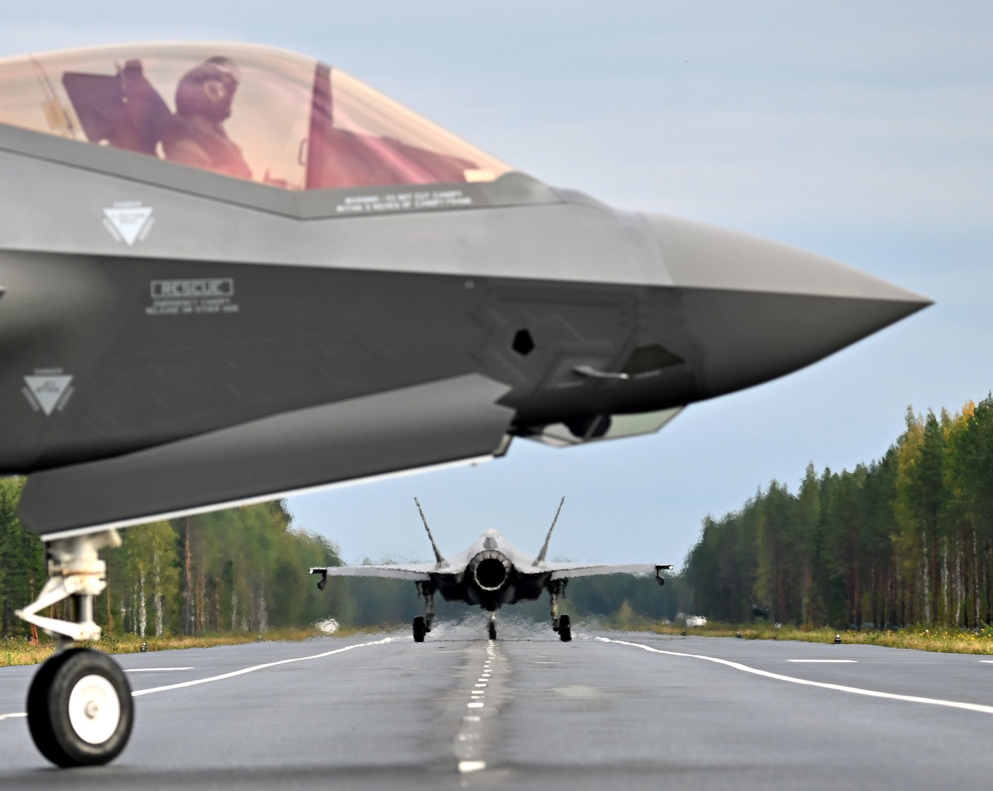 RNoAF F-35As conducting landed and take off operations on a rural highway in Tervo, Finland (Sept 21, 2023). #Finland, which joined #NATO in April, shares a 1,300 km border with #Russia. #Norway is a founding member of the alliance.#avgeeks #aviation #aviationdaily #aviationlover