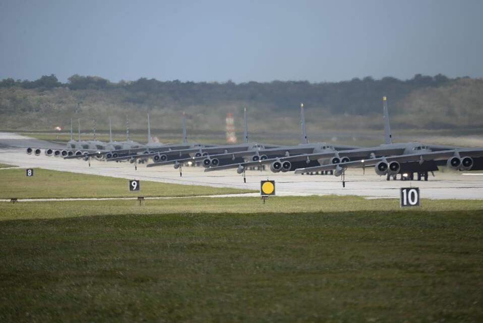 #ICYMI A @USNavy MQ-4C Triton, @usairforce RQ-4 Global Hawk, B-52 Stratofortresses, and KC-135 Stratotankers at Andersen AFB, Guam, perform an Elephant Walk April 13, 2020. The Elephant Walk showcases their commitment to ensure regional stability throughout the Indo-Pacific.