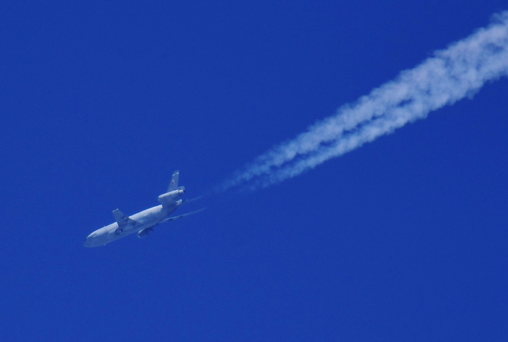 Just managed to catch this lot, about 30 min's ago. KC-10 ROMA21, leading on KC-135 ROMA32. With I think 6 F-15s trailing. This time too high and too far to my North...Still nice to see though...🇺🇸🎇🇬🇧🇺🇦👍