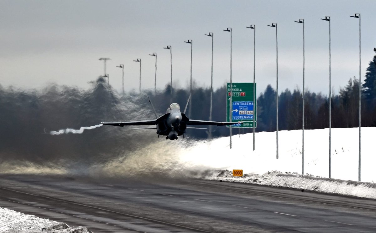 "Hanki 24, the main exercise of the FInnish Air Force in 2024, was arranged in winter conditions from 26 February to 2 March 2024. In total, the exercise involved approximately 40 aircraft and 3,800 airmen, including 2,300 reservists. As per the Air Force’s agile combat employment concept, F/A-18 Hornet fighter jets operated from eight airfields and two highway strips"