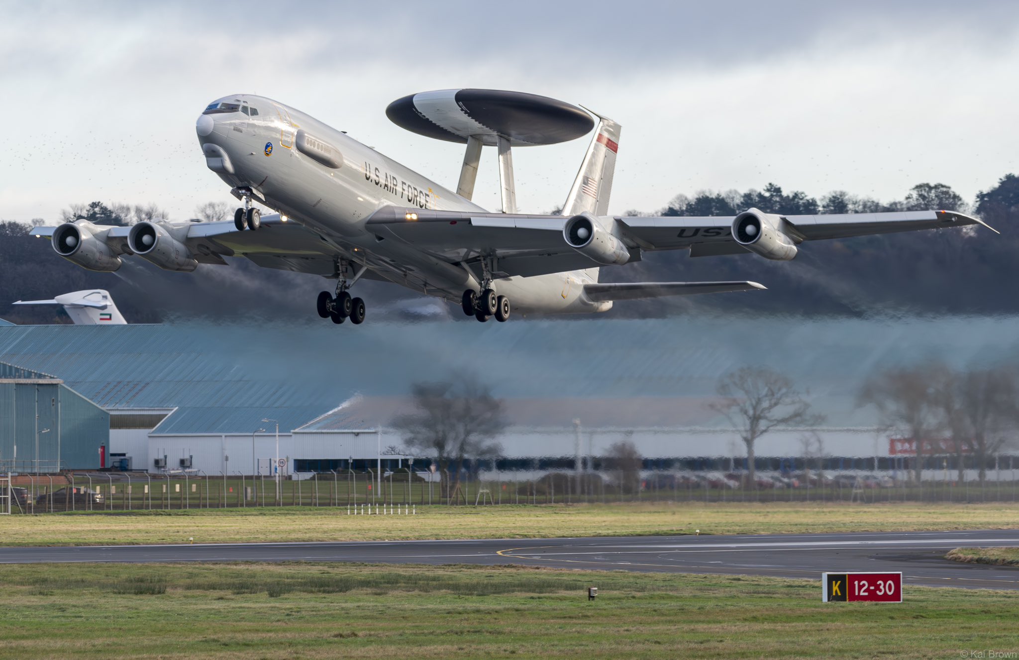 NOVA02 E3 Sentry departing Prestwick this morning after returning on Tuesday with an oil leak in one of its engines 21/11/24