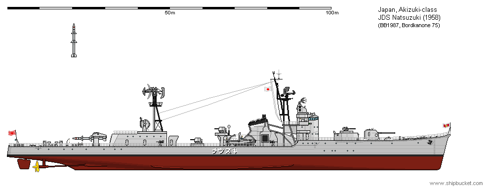 A postwar (1955+) rendition of the Akizuki-class destroyer Fuyuzuki with cool Western armament and radar in place of the domestic ones